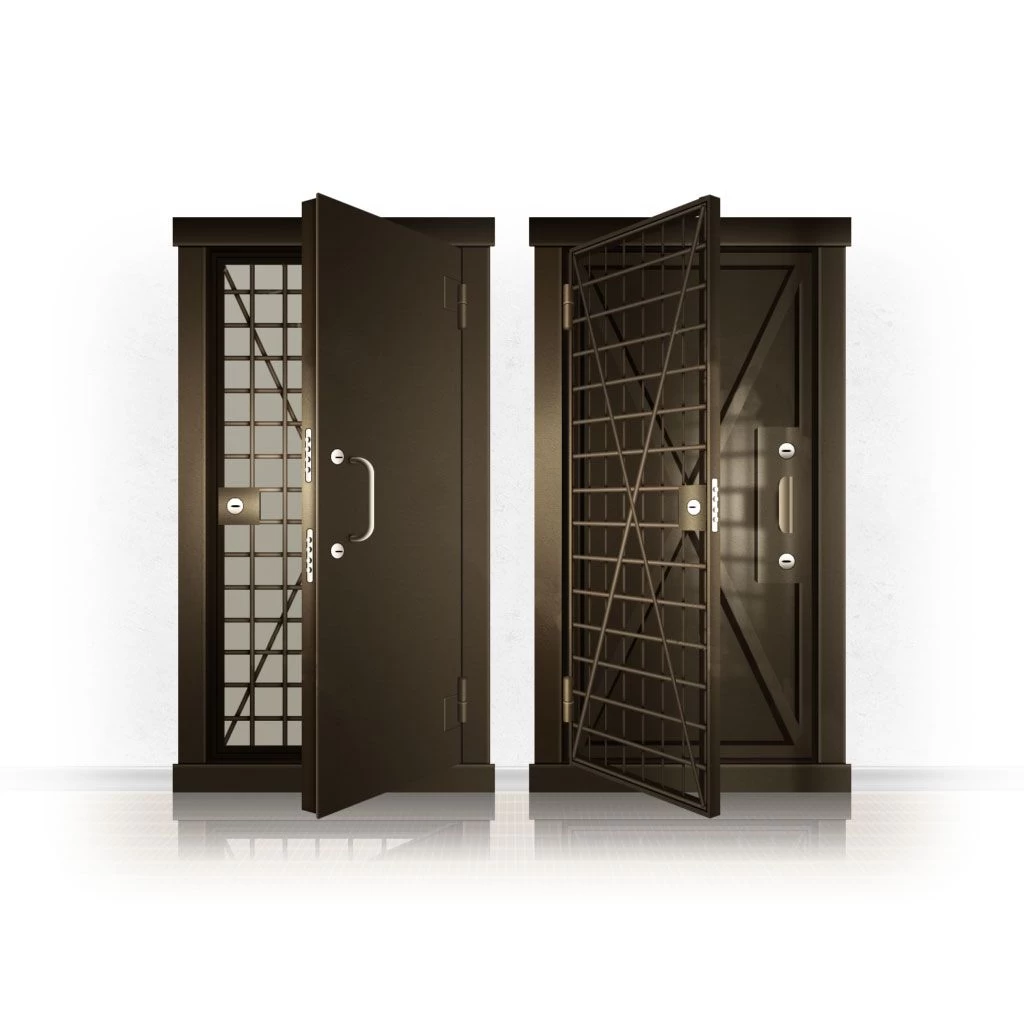 Металлические двери КХО и КХН представляют собой входные блоки, обладающие высоким уровнем взломостойкости и состоят из трех основных элементов: усиленного каркаса, сплошного металлического полотна и решетчатой двери. Дверной блок изготавливается из стального уголка 100*100 мм. Места крепления блока к стене цементируются и закрываются стальными наличниками шириной 40 мм. Крепеж заходит вглубь стены на 80 мм. В конструкции внешней створки монтируются ребра жесткости, для обшивки используется сталь толщиной не менее 3 мм. Внутренняя решетка изготавливается из прутка диаметром 16 мм. Размер ячеек решетки должен составлять не более 15 на 15 см. В точках пересечения прутья надежно приваривают друг к другу. В КХО и КХН необходимо поддерживать определенную температуру и влажность. Для этого внутреннее пространство глухой двери заполняется теплоизоляционным материалом, а по периметру двери приклеивается уплотнитель. Такие двери оборудуются замками с повышенным уровнем взломостойкости. Специализированные двери КХО и КХН в Азнакаево могут быть оснащены сигнализацией, в конструкции могут быть проушины для навесного замка и элементами для опечатывания. Если идет речь о двери в комнату хранения оружия, в створке оборудуется окно для выдачи оружия и спец. средств, которое накрывается стальной дверцей.